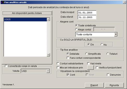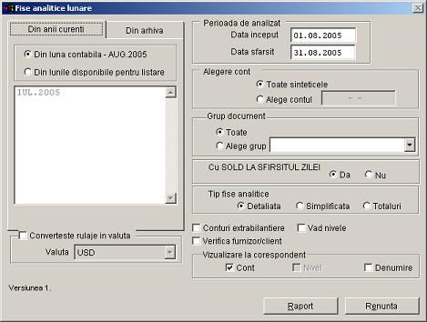Permit obtinerea rapoartelor (fisa cont, solduri etc.) in lei si in devize straine pentru operatiile financiar-contabile care se fac in aceste devize, cu posibilitatea generarii fiselor de cont analitice cu varianta lunara, respectiv anuala.